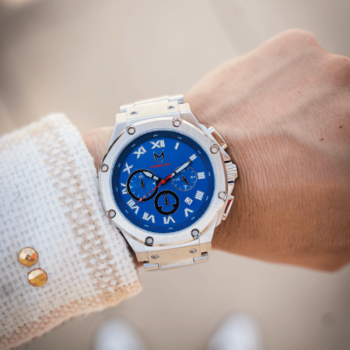 Diese MSTR Ambassador hat ein Edelstahlband, das für eine perfekte Passform auf Maß gekürzt werden kann.